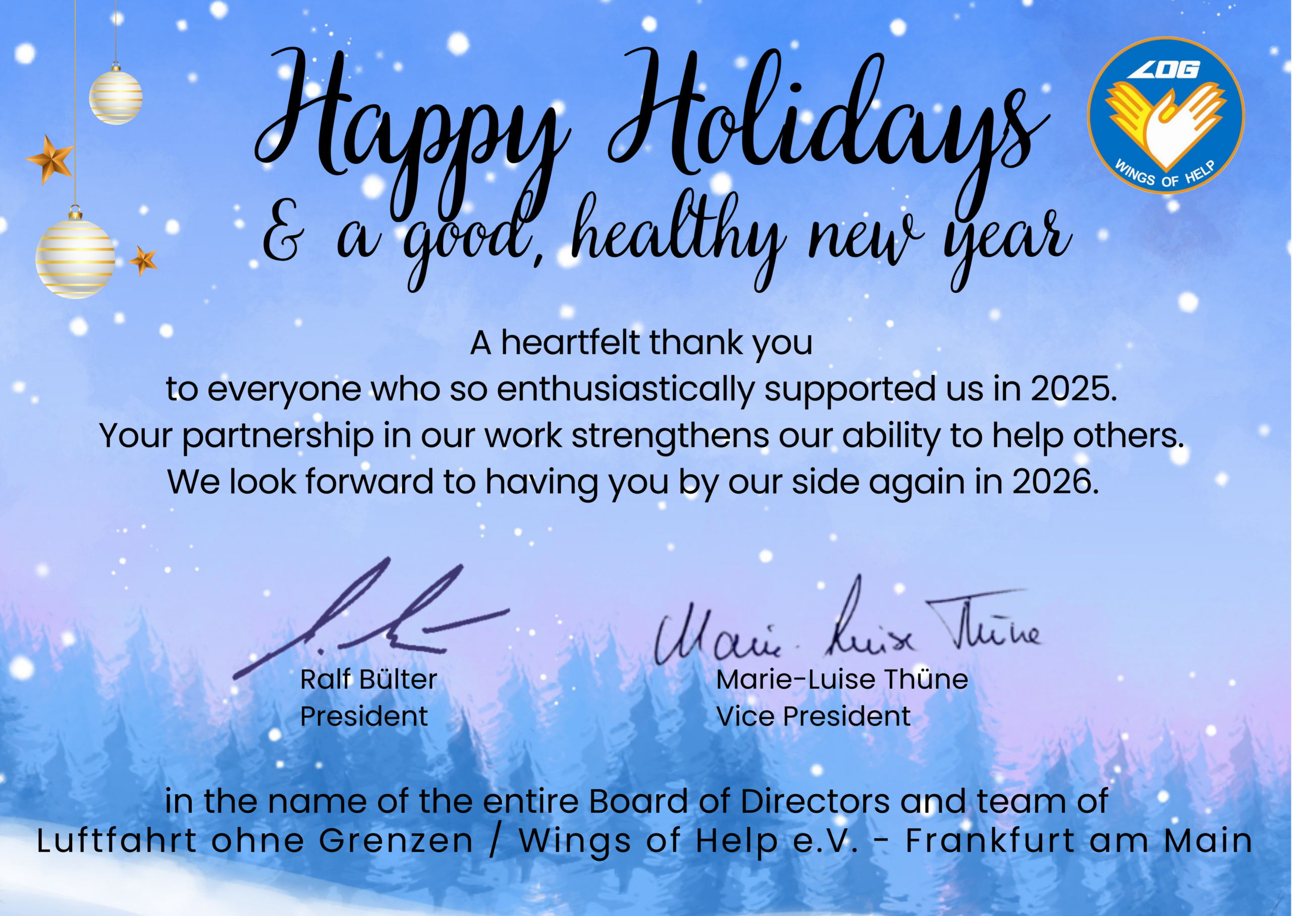 Ralf Bülter outlined the path that Luftfahrt ohne Grenzen/Wings of Help intends to continue: an internationally positioned aid organization with a modern focus and increasing digitalization in many areas. LOG/WoH’s headquarters remain in the Rhine-Main region and at Frankfurt Airport, which houses LOG/WoH’s central office through Fraport AG. Upcoming projects will increasingly focus again on projects with a clear involvement of air transport, after the war in Ukraine forced LOG/WoH to rely more and more on logistics services by truck. In this context, Bülter thanked all supporters who have been closely associated with LOG/WoH for many years. “Without them, our organization would have stagnated in its development. We are grateful for this strong support and promise continued transparency and efficiency in our predominantly volunteer work.”